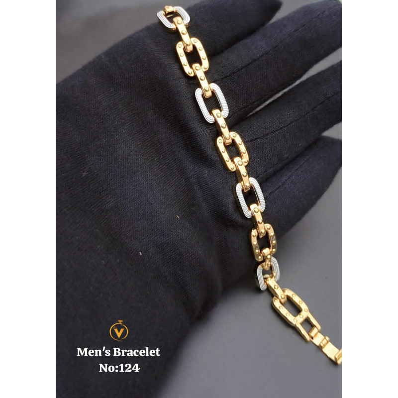 Model Name : Gold Plated Crystal Studded Curb Chain Design Wide Bracelet for Men and Boys